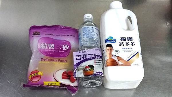 材料: 牛奶400克、吉利丁粉6克、水30克、糖30克