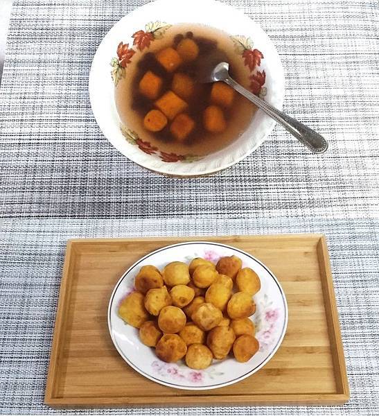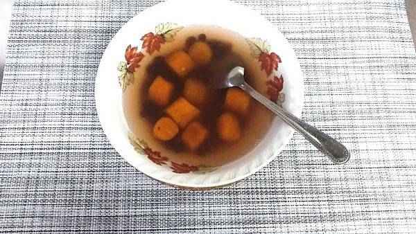 番薯圓的部分,等水滾後再放進去煮,煮到浮出水面即可。