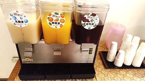 飲料非常難喝,乳酸飲料、柳橙汁、葡萄汁都有過重的糖漿味