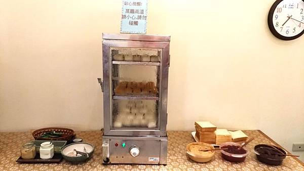饅頭、吐司(花生醬、草莓醬、巧克力醬),很可惜沒有烤土司機,吐司只能冷冷的吃
