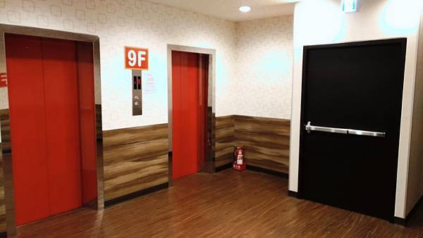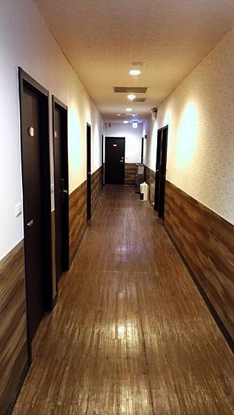 走廊給人的感覺相當明亮,牆壁是格子的圖案,整個跟電梯是大反差啊