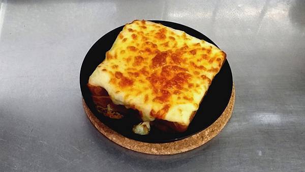 這是一種法國傳統的三明治,香脆的土司夾上火腿、起司片,吐司上頭滿滿的乳酪絲,淋上白醬,再加顆蛋,偶爾放縱一下沒問題的 ✌