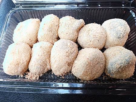 花生口味: 內餡是花生粉加糖粉,甜度跟芝麻差不多