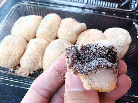 芝麻口味: 內餡是芝麻粉加糖粉,甜度高於紅豆口味,但一樣甜而不膩