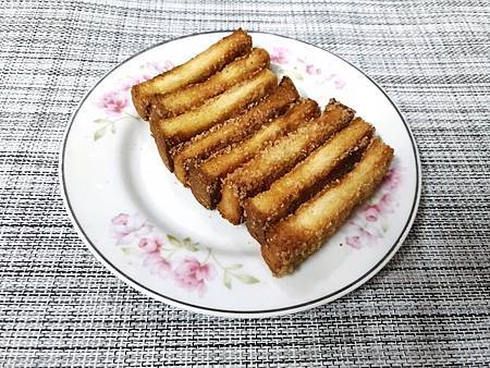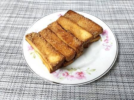 氣炸蜜糖吐司條完成~整體咬起來酥脆,中間會有一點軟的口感