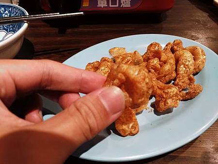 店家推薦第二名的是泰國炸豬皮,單吃或泡軟再吃都行