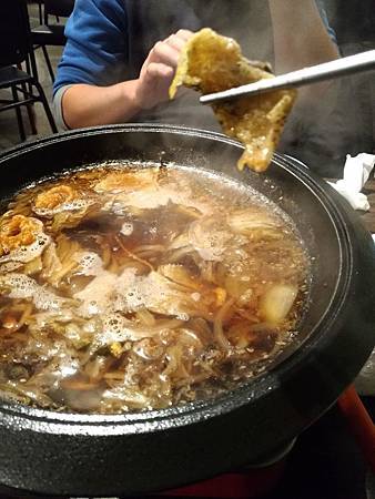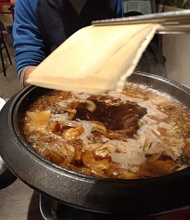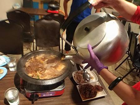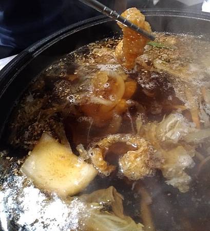 最後再加入蔬菜雞骨湯底(那鍋子好大啊XD)這個湯頭是整個鍋的精華,我特別喜歡湯裡的蔬菜味