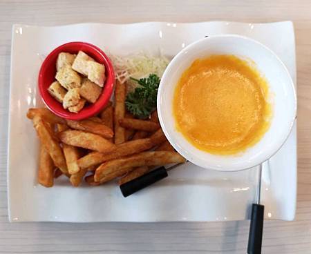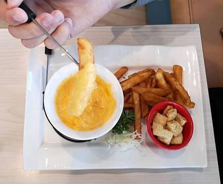 酥脆的法國吐司塊跟脆薯~搭配濃濃的起司~這道一定要趁熱吃