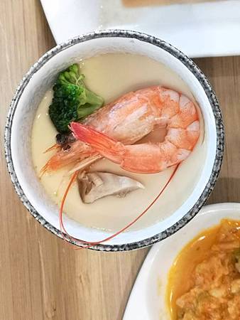 鮮蝦茶碗蒸: 蝦子、小花椰菜跟香菇,重點是這樣算一算今天吃到蠻多蝦子的(好幸福)