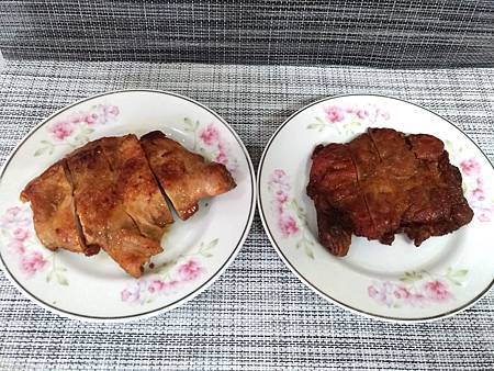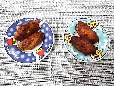 左邊用煎的、右邊用氣炸鍋(180度烤二十分鐘,每五分翻一次面)