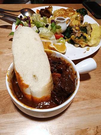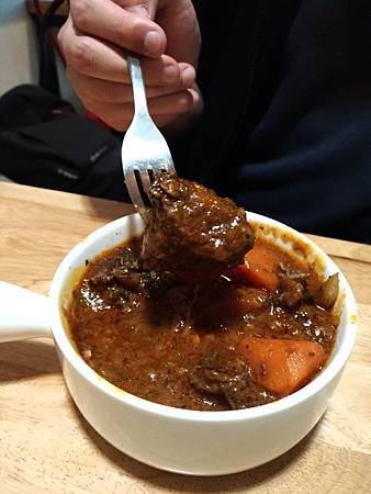 ∎紅酒燉牛肉: 湯汁濃郁有蔬菜味,有五塊不小的牛肉,紅蘿蔔、西洋芹也都很入味