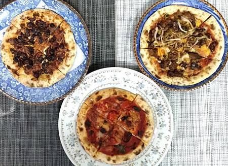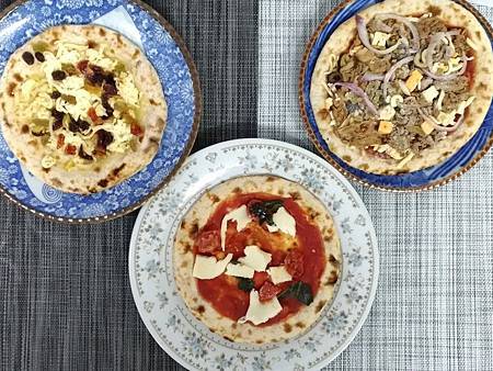 今天吃其中的三種口味:經典瑪格麗特、蜂蜜蘋果綜合果乾乳酪、傑克辣味豬肉