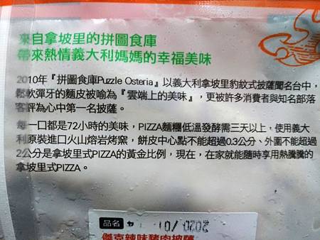看了包裝背後的簡介,披薩麵團以低溫發酵需三天以上,餅皮中心點及外圍的規格都有固定,是拿坡里式的pizza