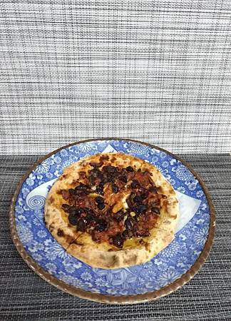 我喜歡聞起來的蜂蜜香,而吃甜口味的披薩最怕會太甜太膩,但這個不用擔心,有搭配份量不少的果乾,吃起來酸酸甜甜的