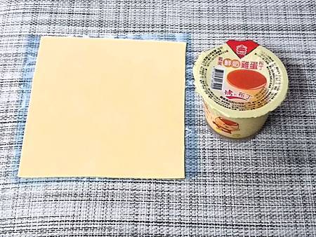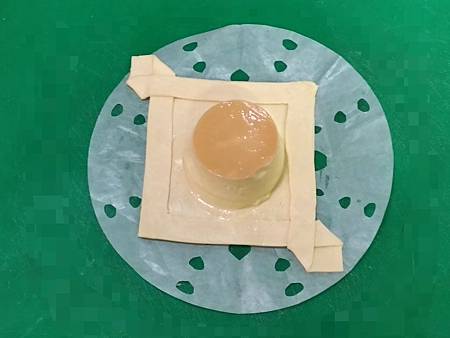 步驟四: 將布丁放在上面 (需先瀝乾糖水、或用衛生紙將布丁的水分擦乾)