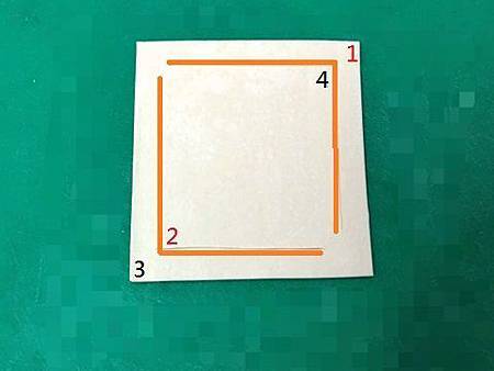 步驟一: 延橘色線切出「 」的形狀,左上方跟右下方之間要留空間、不要切斷